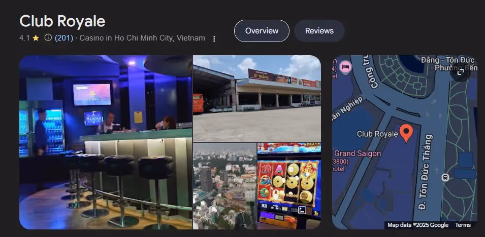 Located in the bustling city of Saigon, Club Royale Casino has been a prominent entertainment destination since its opening in 2004. Spanning 5,651 square feet, the venue offers an elegant and vibrant atmosphere with 70 gaming machines and a variety of classic table games, including roulette and poker. With its welcoming environment and modern facilities, it’s an appealing option for those seeking a sophisticated experience in Vietnam’s entertainment scene.