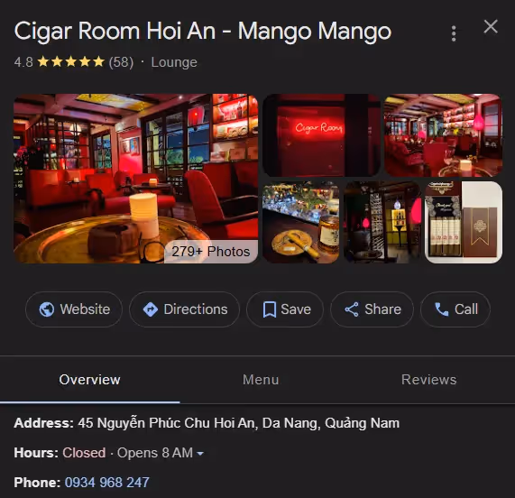 Cigar Room Hoi An – Mango Mango – 45 Nguyen Phuc Chu