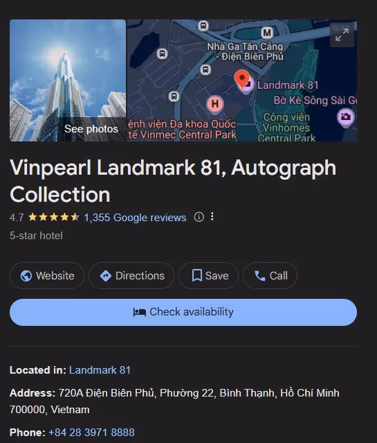 • Address: 720A Dien Bien Phu Street, Ward 22, Binh Thanh District, Ho Chi Minh City (within Landmark 81)