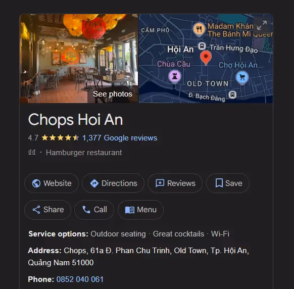 Located at 61A Phan Chu Trinh, Minh An Ward, Hoi An, Quang Nam Province, Chops Hoi An offers a refreshing blend of rustic Hoi An charm and contemporary dining.
