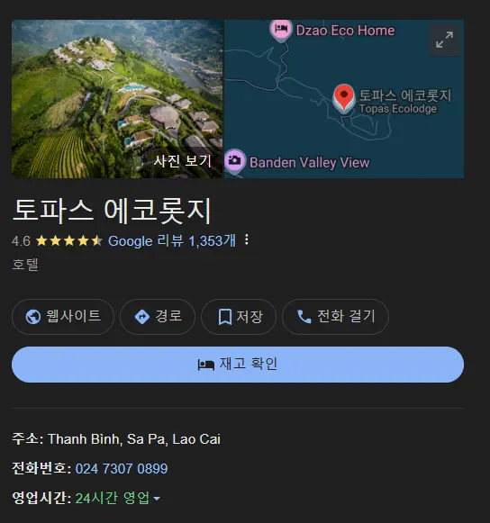 - 주소: No 1, Ba Khan, Mai Chau, Hoa Binh