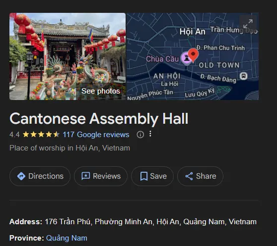 회관 방문을 계획 중이라면 호이안 지도를 활용해 각 회관의 위치를 효율적으로 파악하고 동선을 정리해 보세요. 이렇게 하면 시간을 절약하며 더 많은 장소를 둘러볼 수 있습니다.