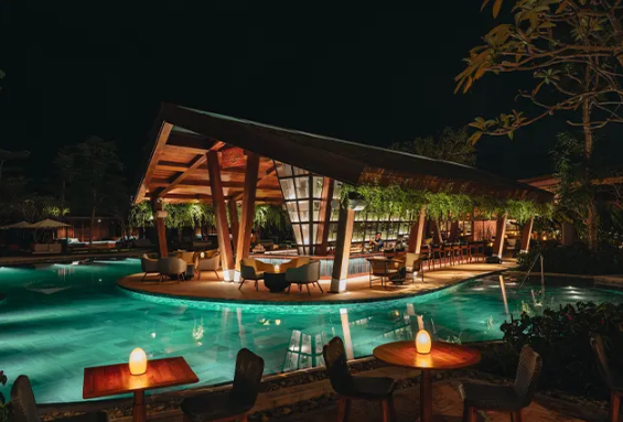 NOX Beach Club là điểm nhấn của Hoiana Resort & Golf về đêm, mang đến không gian sôi động với bốn nhà hàng, hai quầy bar và hồ bơi lớn ven biển. Du khách có thể thư giãn tại khu vực bar với những món cocktail đặc trưng, nổi bật trong số đó là món cocktail đậm chất Hội An – Hoi An Sling, là sự kết hợp hoàn hảo giữa Beefeater Gin, D.O.M, cherry liquor, guava và beetroot cordial cùng ginger beer.