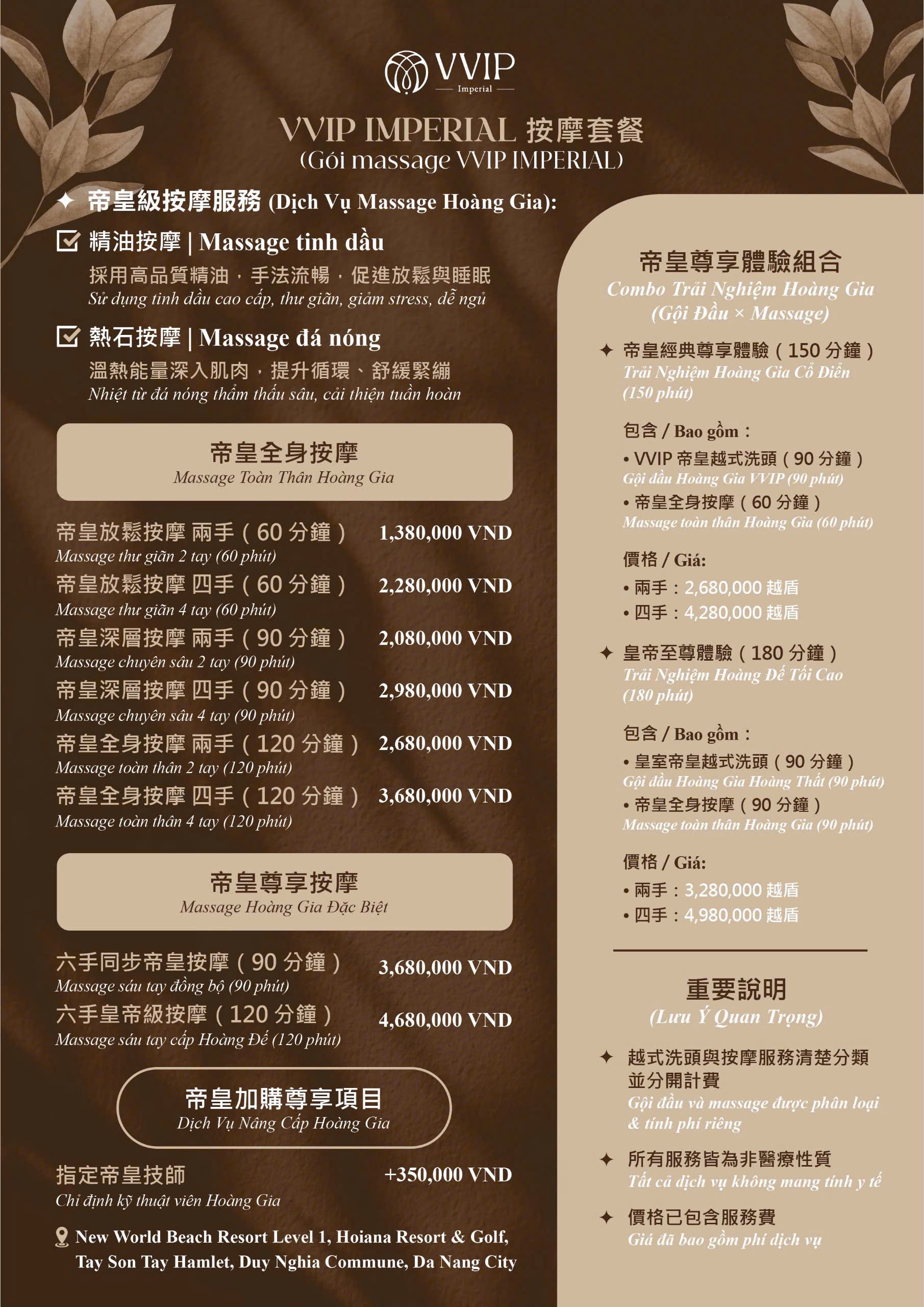 在VVIP皇室Spa探索深層煥活,越南古老療癒傳統與現代奢華在此交融。體驗我們的招牌四手與六手同步按摩,重建身心和諧平衡。